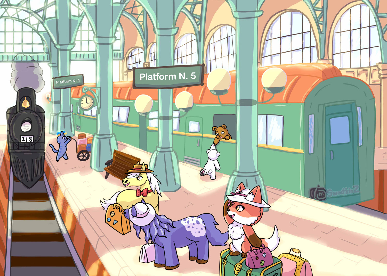 Zeddy the Palomino pony and his companions, Lavender the purple Appaloosa and Mable the Red Fox, began their first day of vacation at the train station in town. They are in preparation to set out and explore new places together and make tons of great memories!